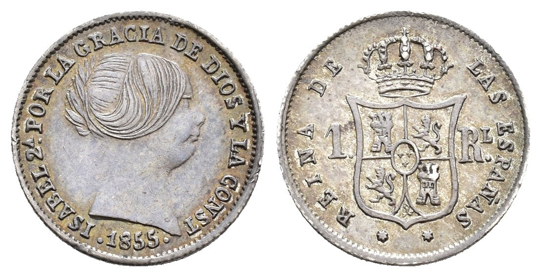 ISABEL II. Real. 1855. Sevilla. AR 1,3 g. 14,7 mm. VI-285; AC-325. EBC-/MBC+.