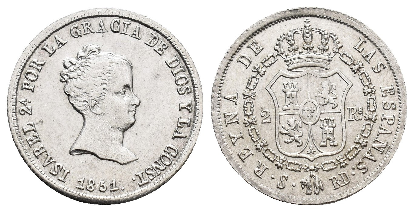 ISABEL II. 2 reales. 1851. Sevilla. RD. AR 2,58 g. 18,2 mm. VI-335; AC-388. EBC-.
