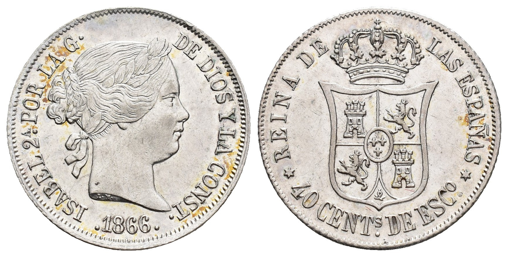 ISABEL II. 40 céntimos de escudo. 1866. Madrid. AR 5,11 g. 23,3 mm. VI-430; AC-501. EBC.