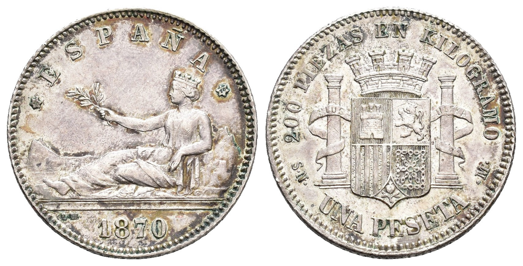 GOBIERNO PROVISIONAL. Peseta. 1870*18-70. Madrid. SNM. AR 5,01 g. 23 mm. VII-14; AC-18. EBC-/MBC+.