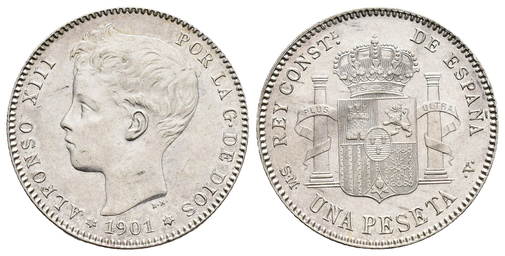 ALFONSO XIII. Peseta. 1901*19-01. Madrid. SMV. AR 5,05 g. 23 mm. VII-157; AC-60. EBC.