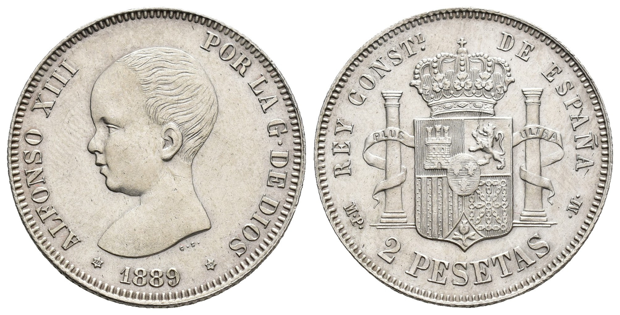 ALFONSO XIII. 2 pesetas. 1889*18-89. Madrid. MPM. AR 10,01 g. 27,1 mm. VII-171; AC-82. EBC/EBC-.