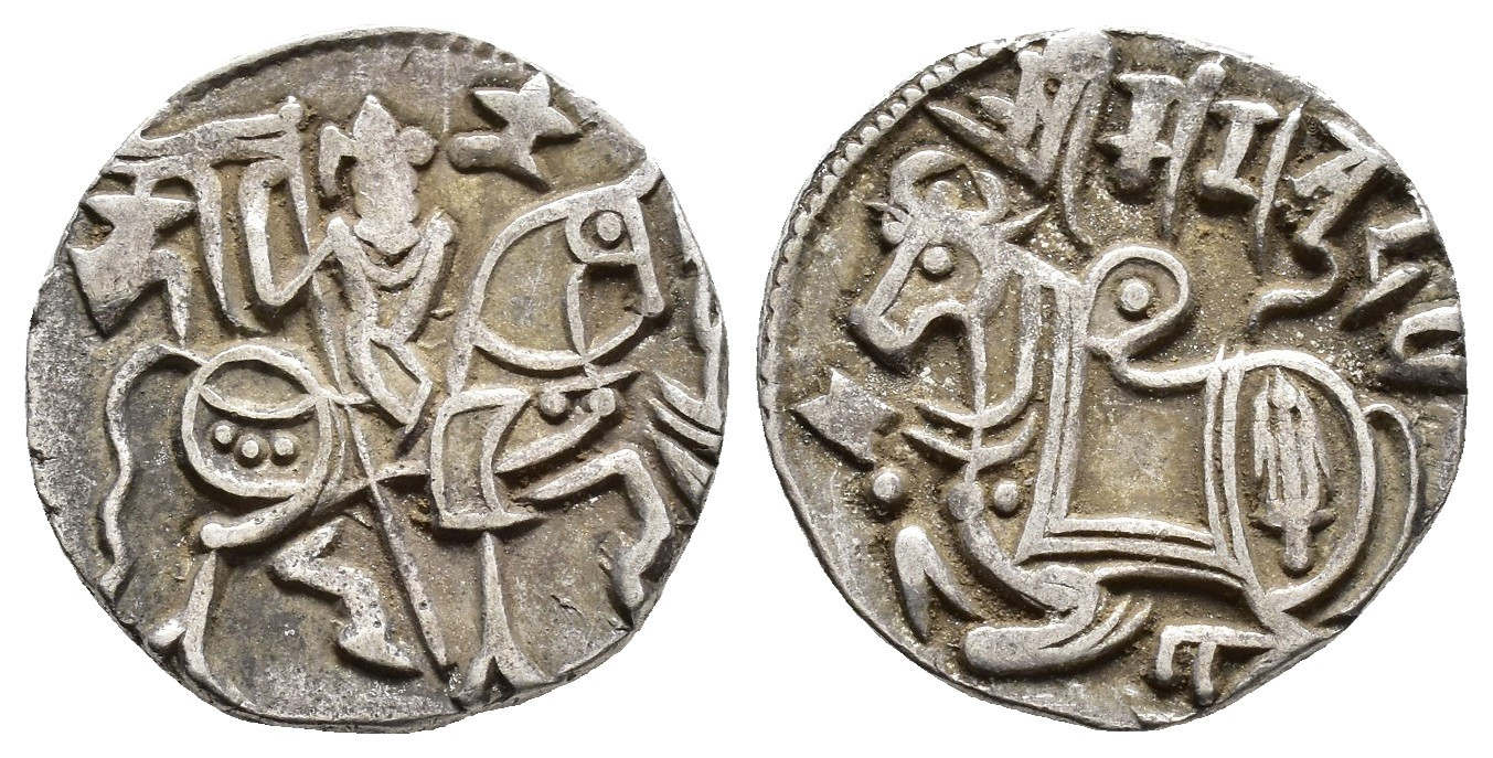 MONEDA EXTRANJERA. AFGANISTÁN. Samanta Deva. Dracma. 850-970. Jinete y vaca. AR 3,31 g. 18 mm. Mit-117-120. MBC+.