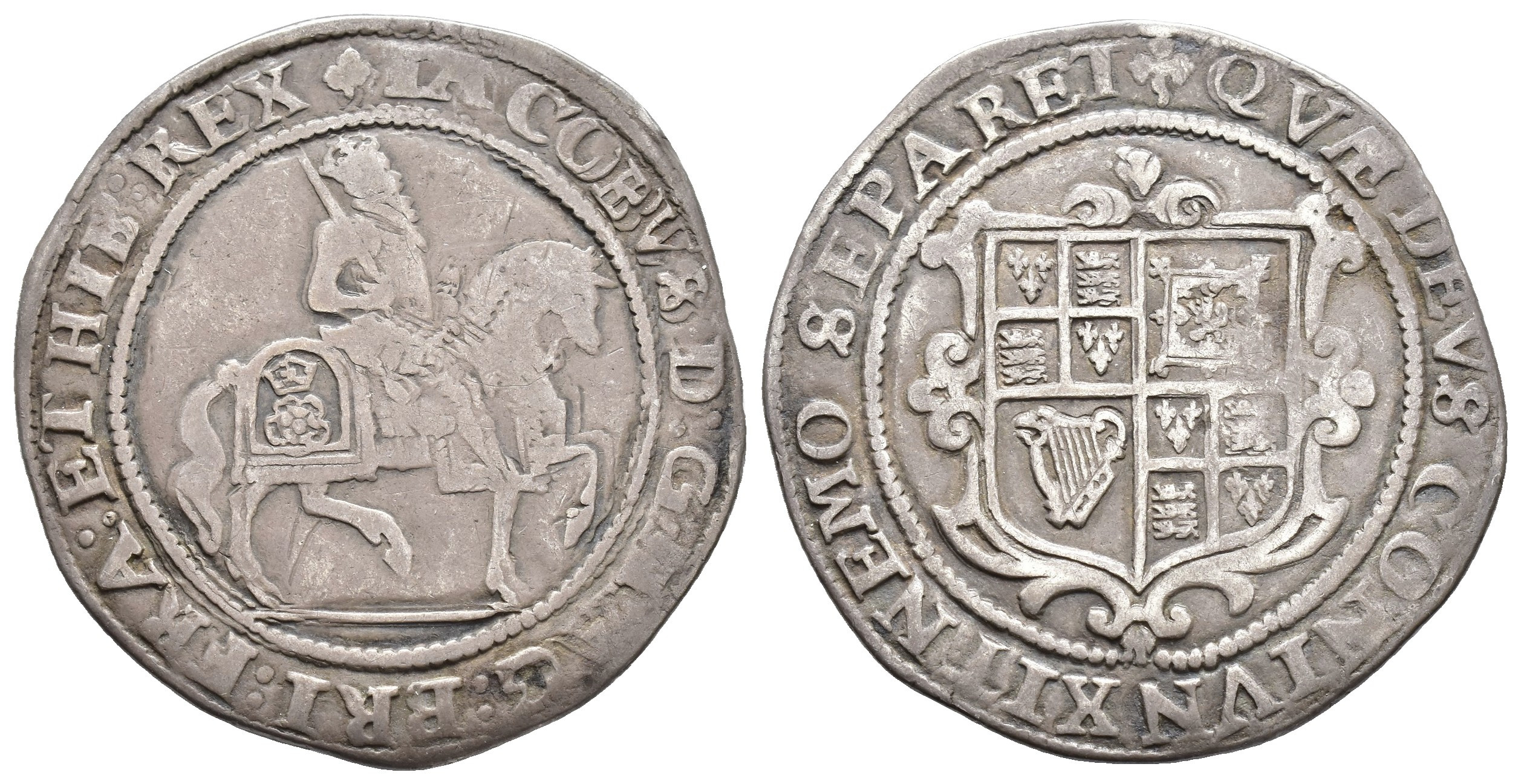 MONEDA EXTRANJERA. GRAN BRETAÑA. Jaime I. 1/2 corona. AR 14,35 g. 34,9 mm. Spink-2666. Rayitas. BC+/MBC-.