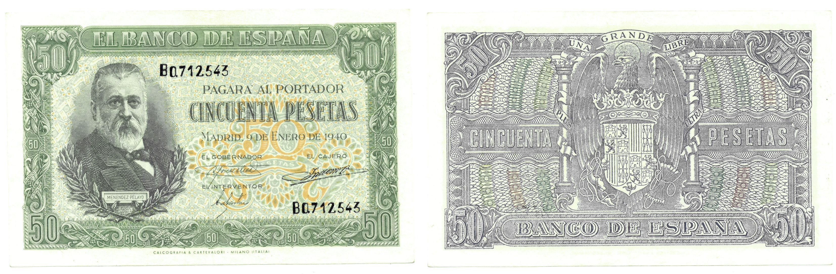 BILLETES ESPAÑOLES. BANCO DE ESPAÑA. 50 pesetas, 9 de enero de 1940, Serie B, ED-437a. SC-.