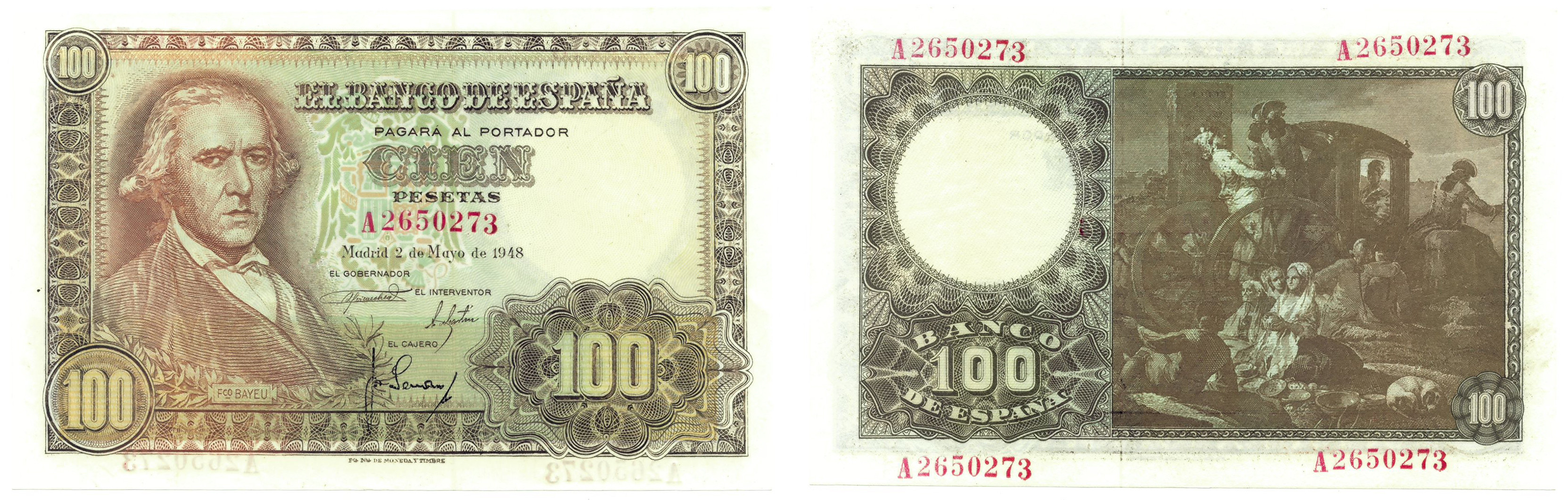 BILLETES ESPAÑOLES. BANCO DE ESPAÑA. 100 pesetas, 2 de mayo de 1948, Serie A, ED-456a. Conserva todo el relieve tipográfico. SC.