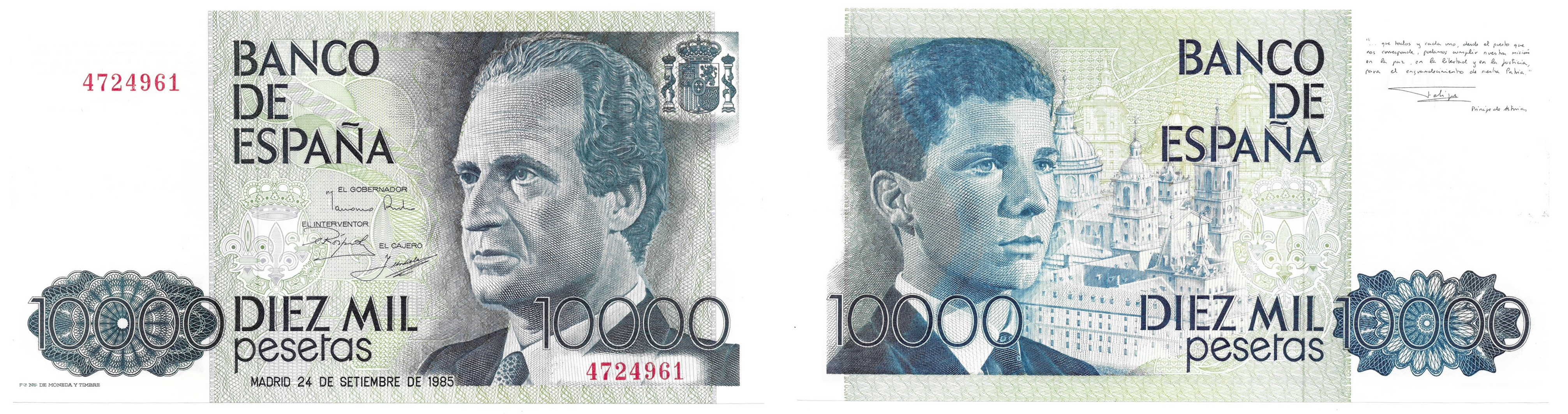 BILLETES ESPAÑOLES. BANCO DE ESPAÑA. 10000 pesetas, 24 de septiembre de 1985, Sin serie, ED-481. SC.