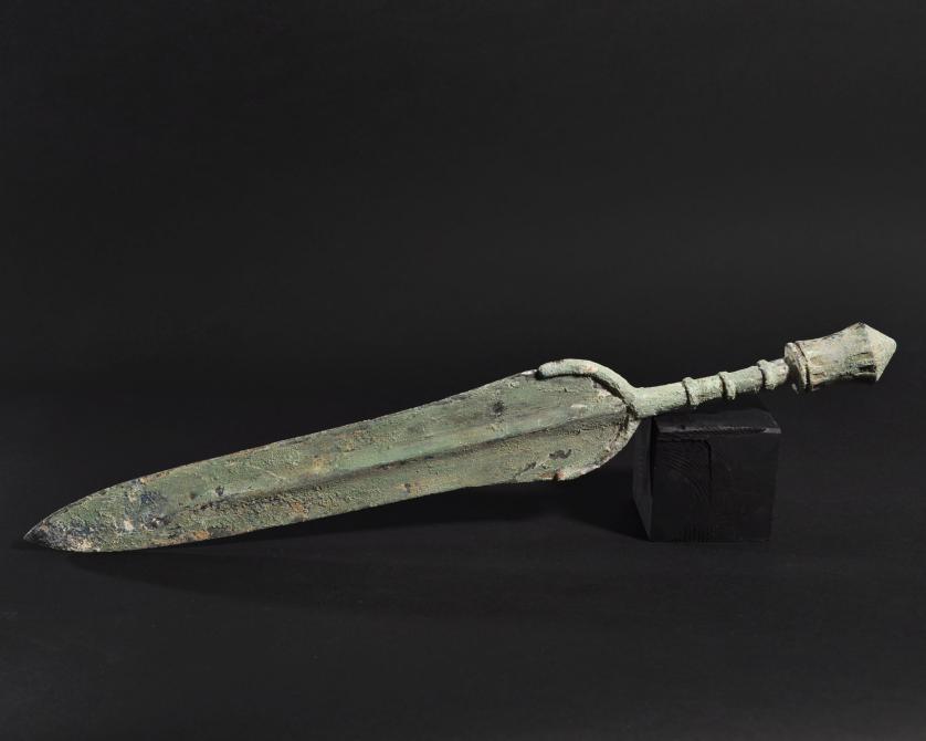 ARQUEOLOGÍA. PRÓXIMO ORIENTE. Luristán. Espada con nervadura central (ss. IX-VI a.C.). Bronce. Longitud 48,6 cm.
