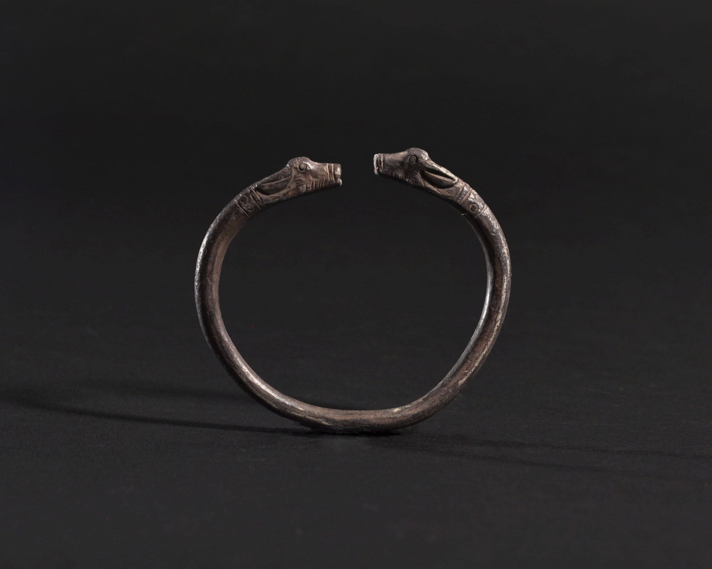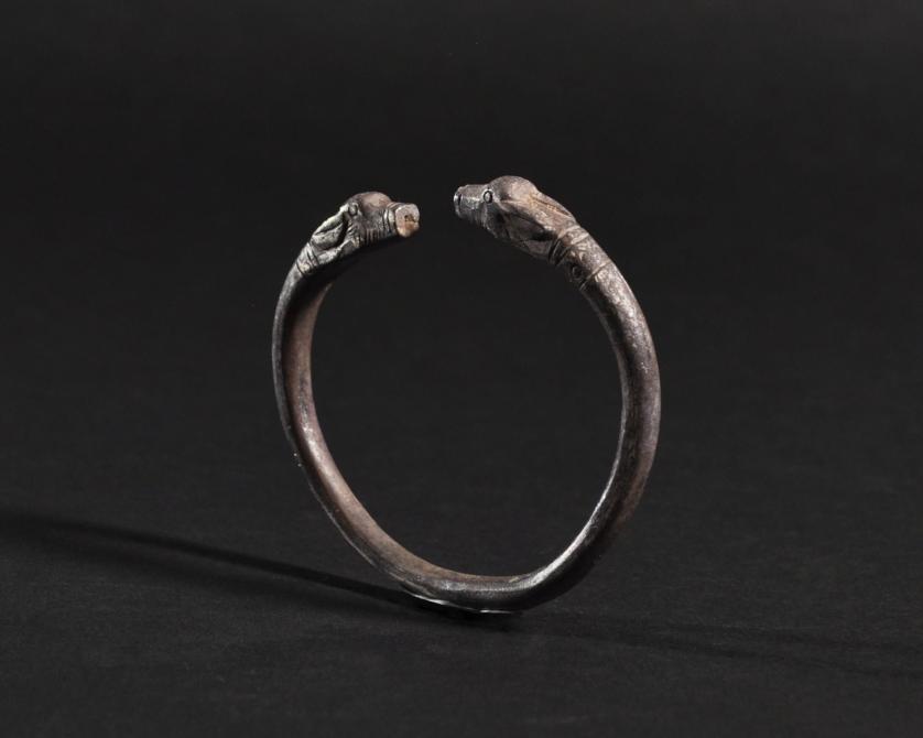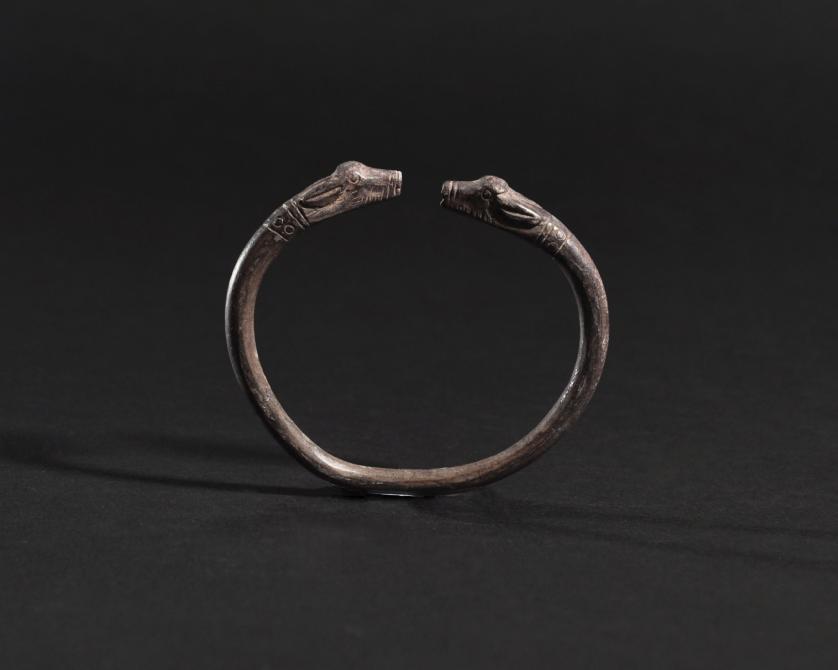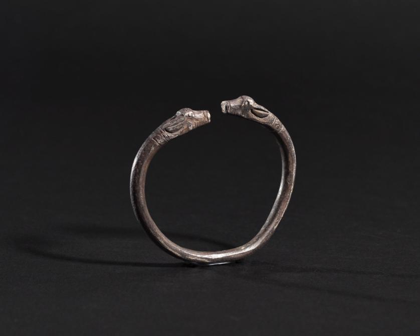 ARQUEOLOGÍA. PRÓXIMO ORIENTE. Imperio persa. Aqueménidas. Pulsera con terminaciones en forma de cabezas zoomorfas (550-330 a.C.). Plata. Diámetro 6,4 cm.