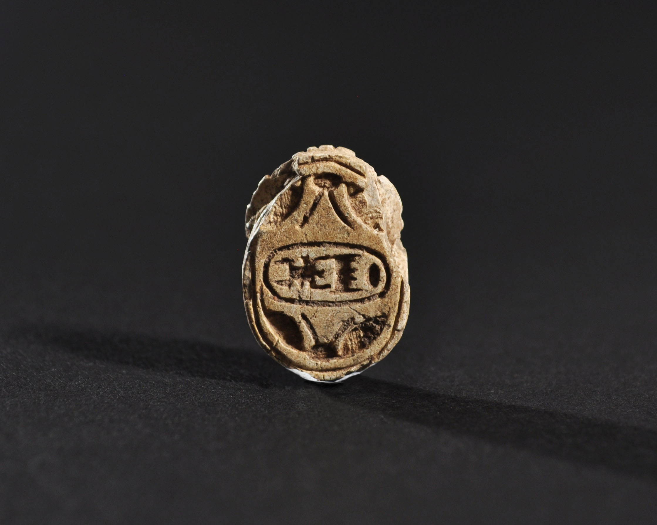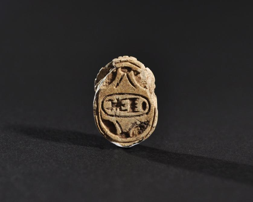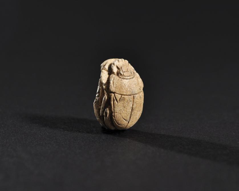 ARQUEOLOGÍA. EGIPTO. II Período Intermedio. Escarabeo (1773-1550 a.C.). Fayenza. Longitud 2,1 cm. Presenta pequeñas faltas.