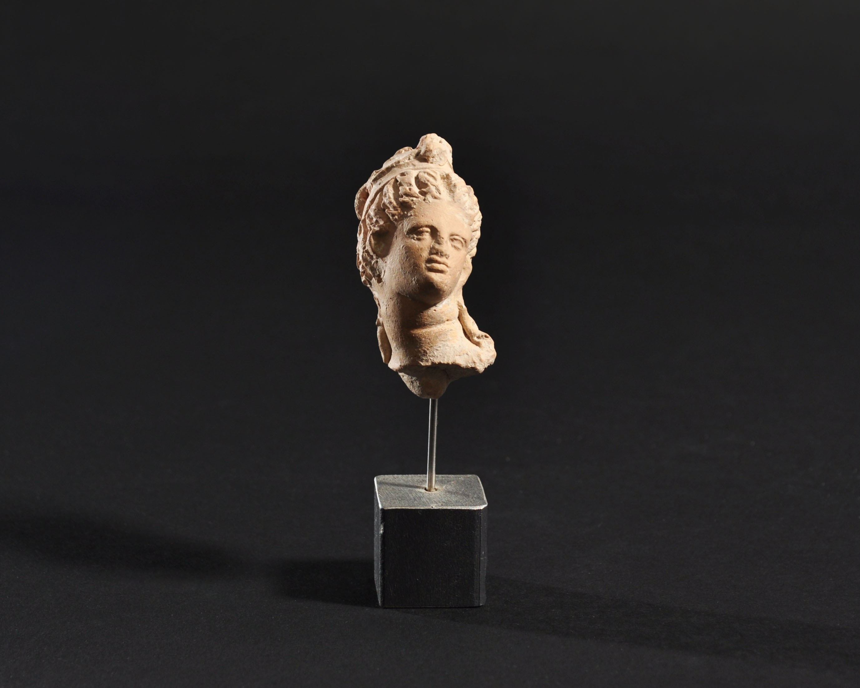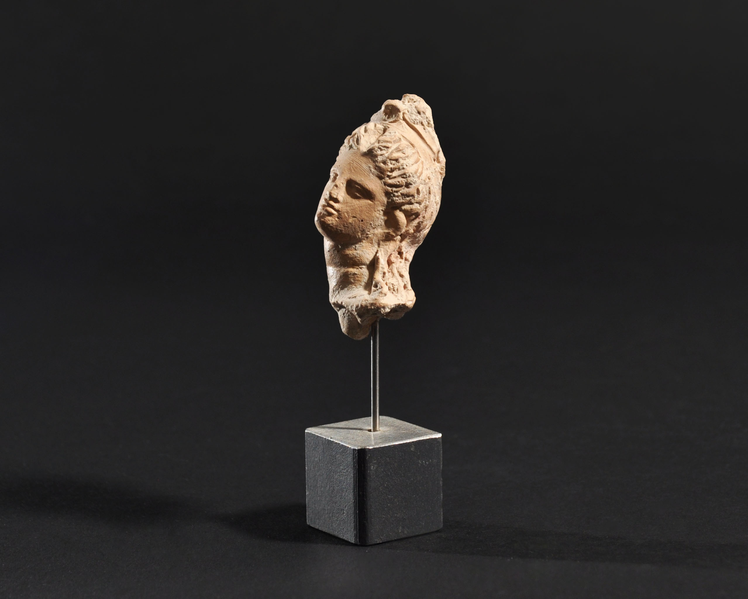 ARQUEOLOGÍA. GRECIA ANTIGUA. Helenístico. Cabeza femenina (ss. III-I a.C.). Cerámica. Altura 6 cm. Incluye peana.