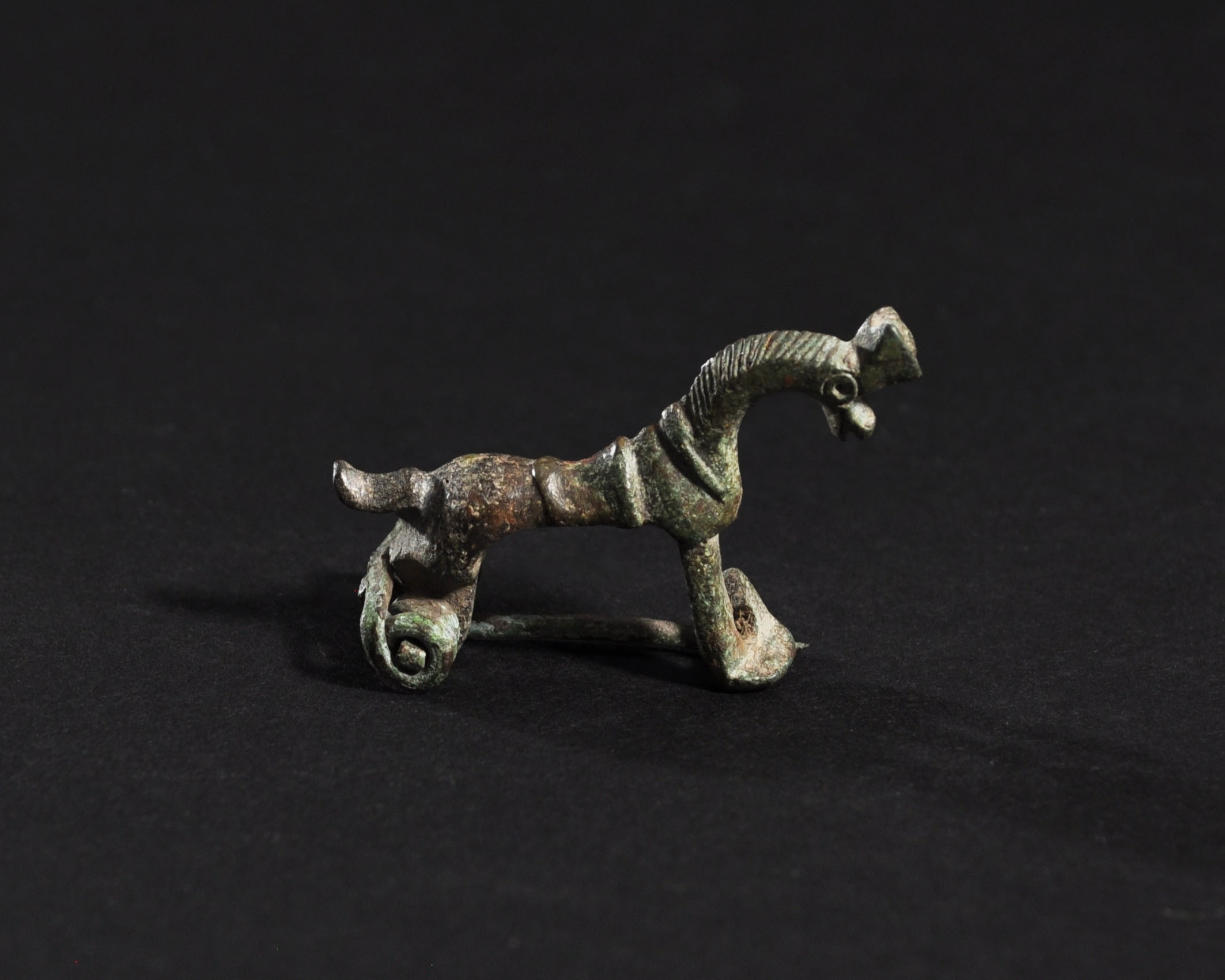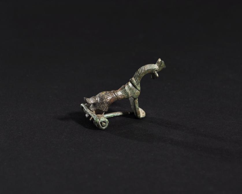 ARQUEOLOGÍA. ROMA. Fíbula en forma de caballo (ss. II-III d.C.). Bronce. Longitud 4,3 cm.