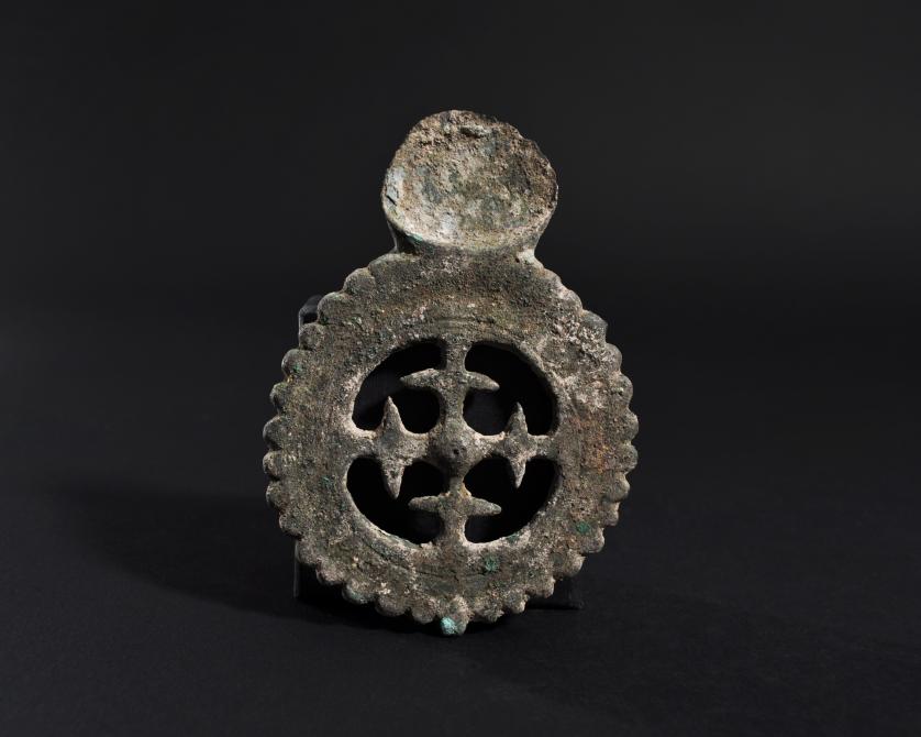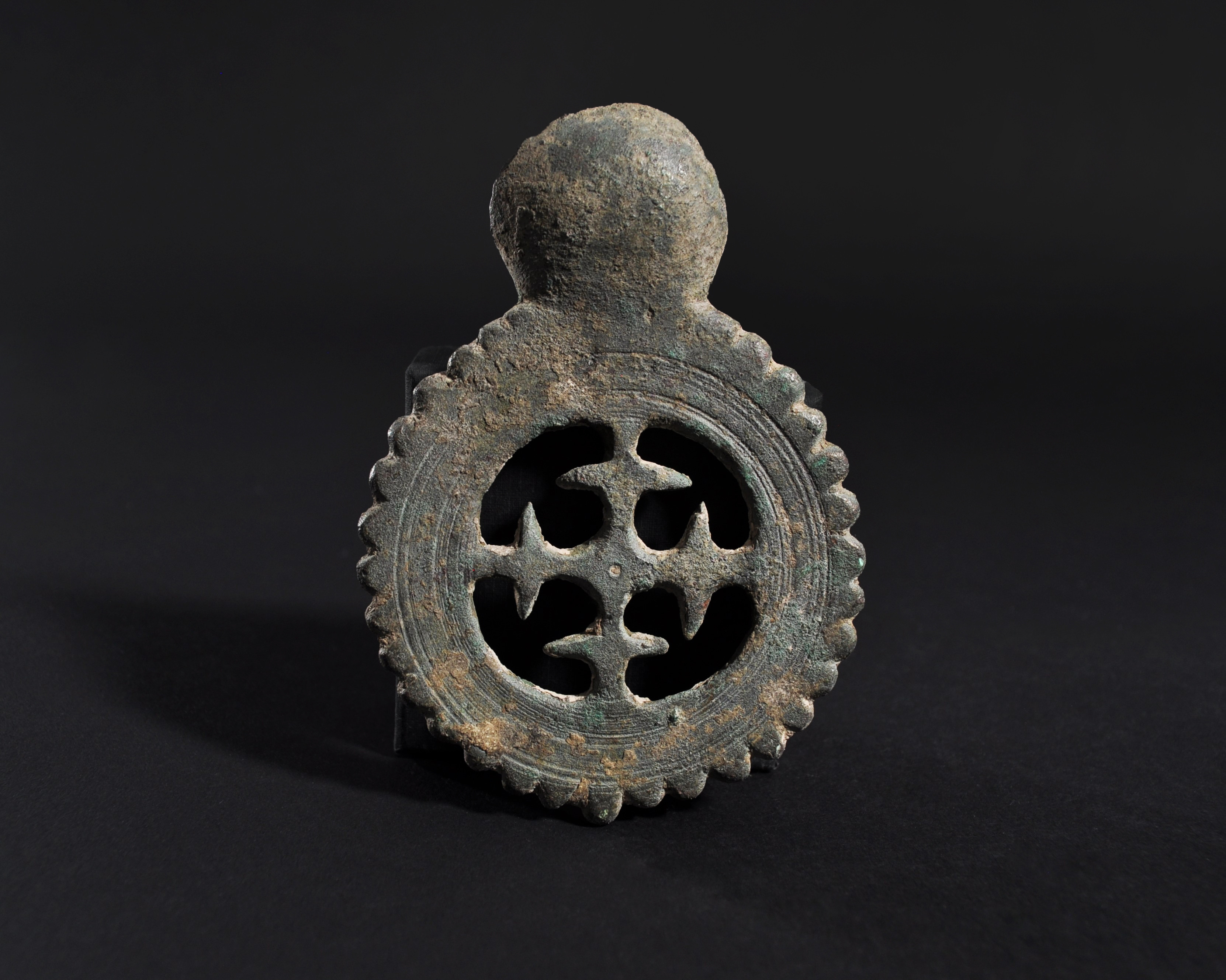 ARQUEOLOGÍA. ROMA. Cama de bocado de caballo con decoración de cruz (ss. III-IV d.C.). Bronce. Longitud 10,3 cm.