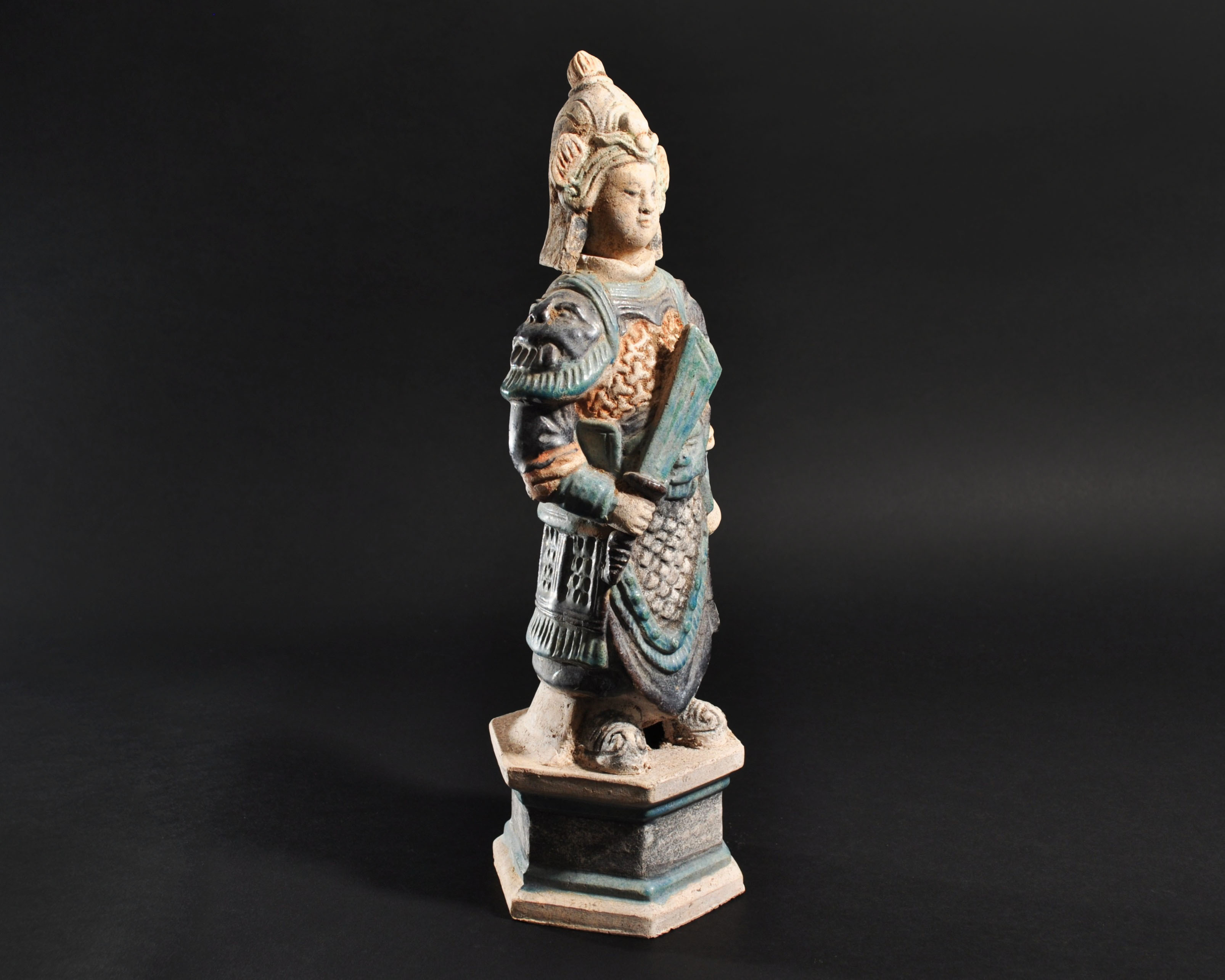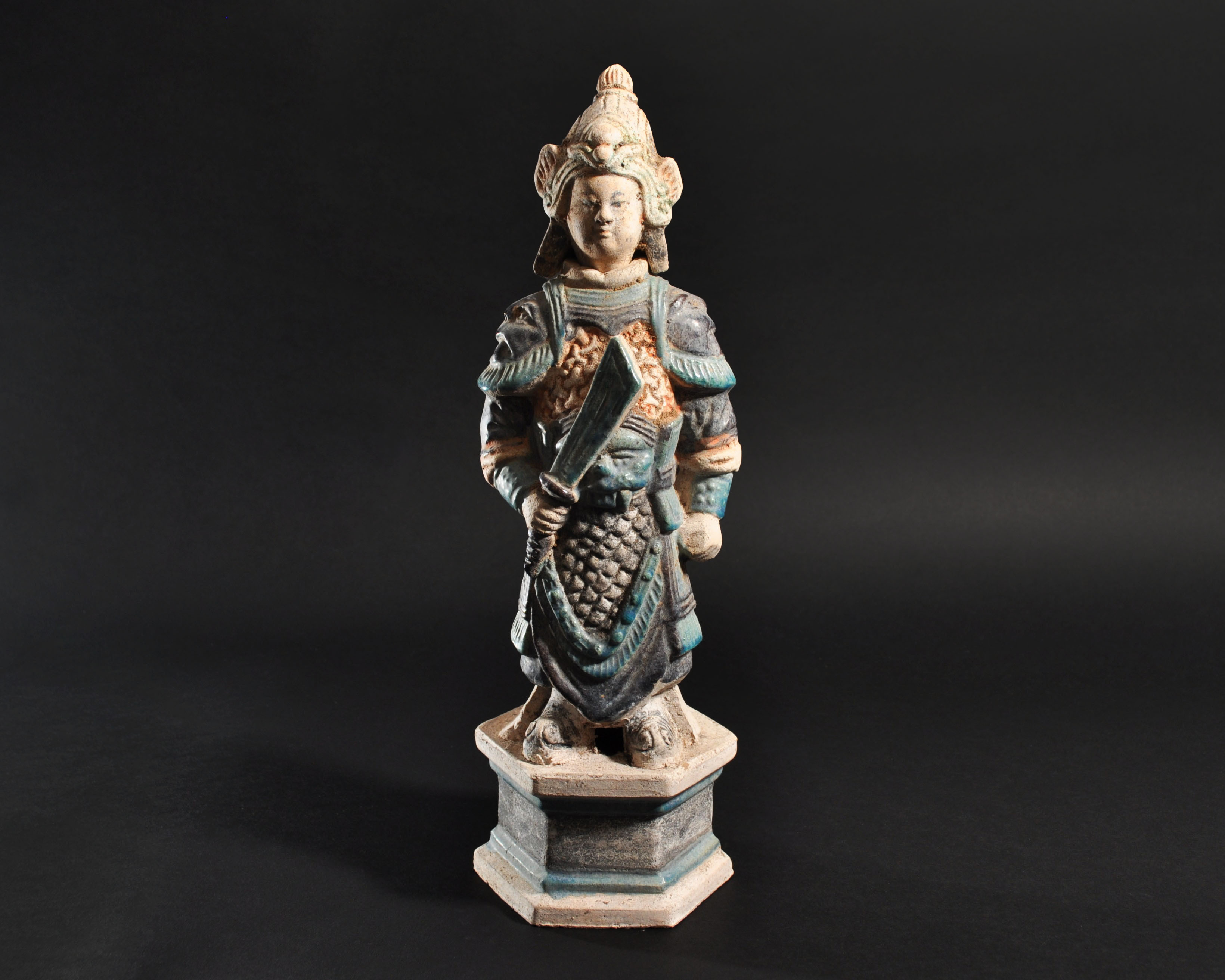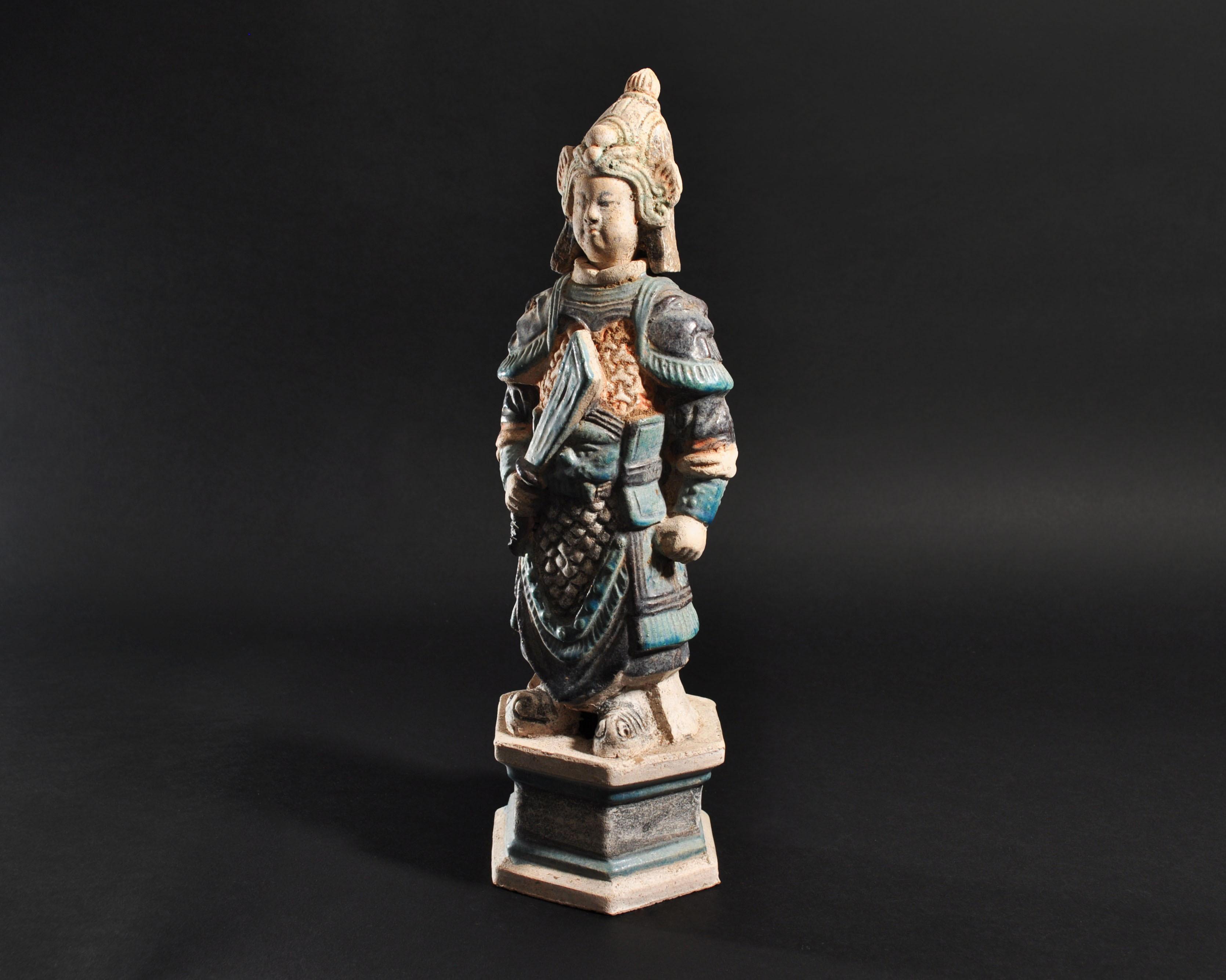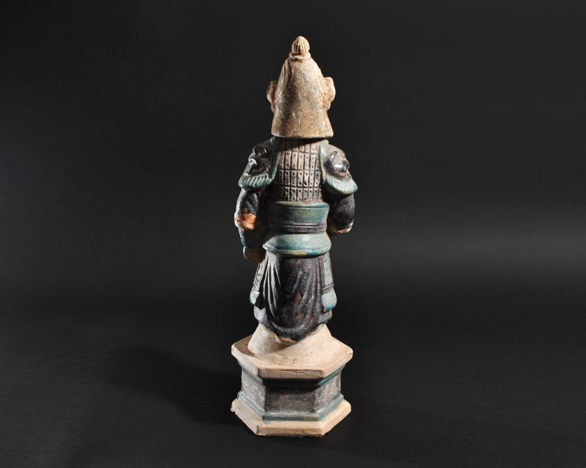 ARQUEOLOGÍA. CHINA. Dinastía Ming. Figura de soldado con cabeza desmontable (1368-1644). Terracota vidriada. Altura 36,4 cm.