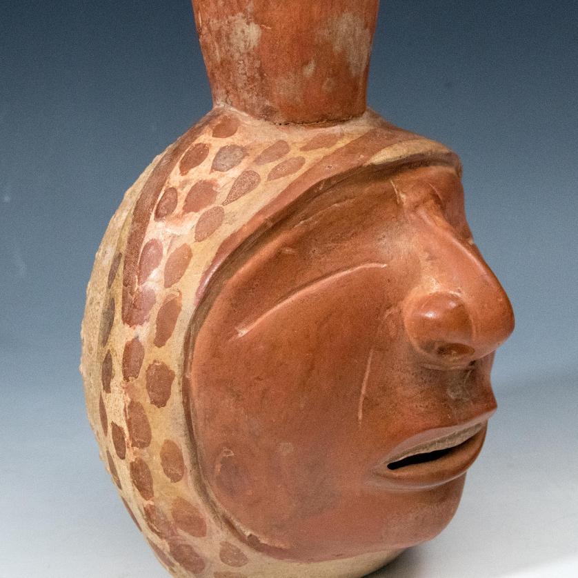 ARQUEOLOGÍA. PREHISPÁNICO. Moche. Vasija en forma de retrato de mujer (ss. II-VII d. C). Cerámica policromada. Altura 22 cm.