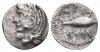 HISPANIA ANTIGUA. GADIR. Hemidracma. A/ Cabeza de Melkart con leonté a izq. R/ Atún a der.; encima y debajo ley. fenicia mp'l/'gdr. AR 1,49 g. 12,7 mm. I-1308. ACIP-634. Porosidades. MBC.