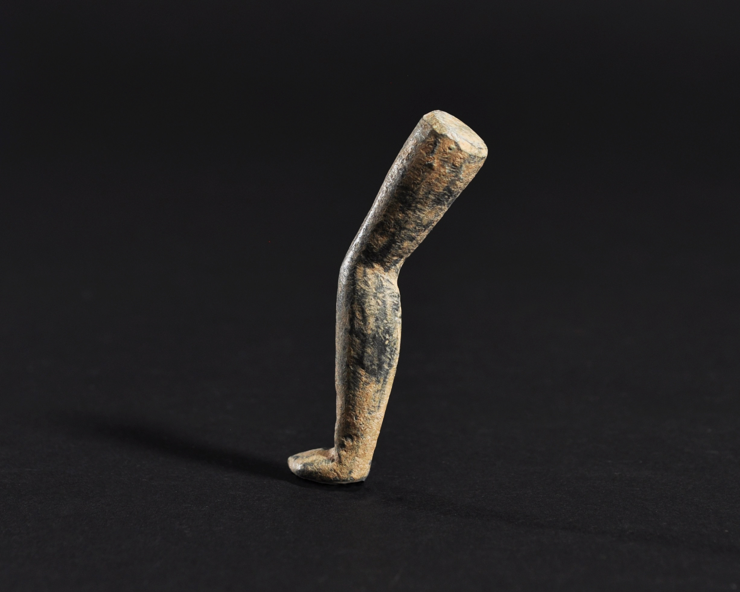 ARQUEOLOGÍA. HISPANIA ANTIGUA. Cultura ibérica. Exvoto anatómico en forma de pierna (ss. IV-II a.C.). Bronce. Longitud 5,2 cm.