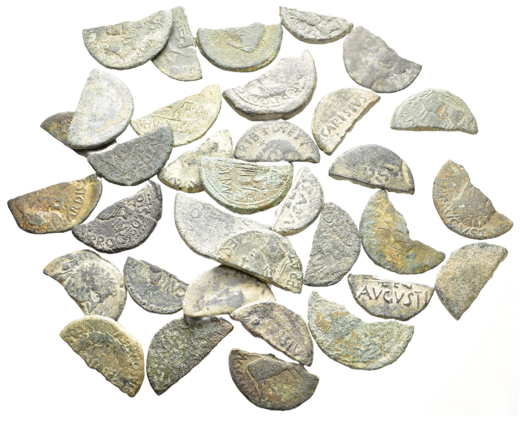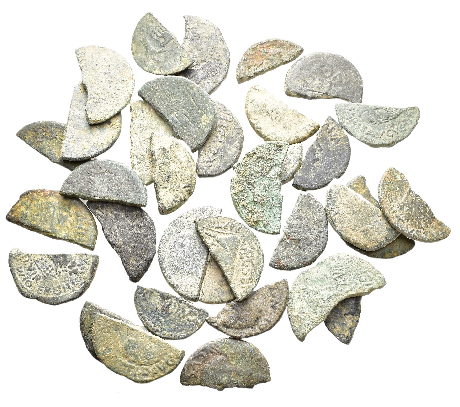 HISPANIA ANTIGUA. Lote de 34 monedas hispano-romanas partidas 1/2 as. BC-/BC+.