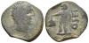 HISPANIA ANTIGUA. OSET. As. A/ Cabeza masculina a der. R/ Figura masculina a izquierda, sobre línea, sosteniendo racimo de uvas en der.; delante ley. vertical externa OSET. AE 12,83 g. 25,2 mm. I-1947; ACIP-2463. CC-3323, mismo ejemplar. BC-/BC+. Muy escasa.