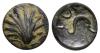 HISPANIA ANTIGUA. ARSE-SAGUNTUM. Octavo. A/ Venera. R/ Delfín a der., encima creciente, debajo estrella y A. AE 1,46 g. 12,1 mm. I-2064; ACIP-1979. Pátina oscura. MBC.