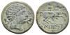 HISPANIA ANTIGUA. SEKAISA. Unidad. A/ Cabeza masculina a der., delante y detrás delfines. R/ Jinete con lanza a der., en exergo SEKaISA. AE 8,9 g. 22,7 mm. I-2131; ACIP-1562. Pátina verde claro. MBC. Escasa.