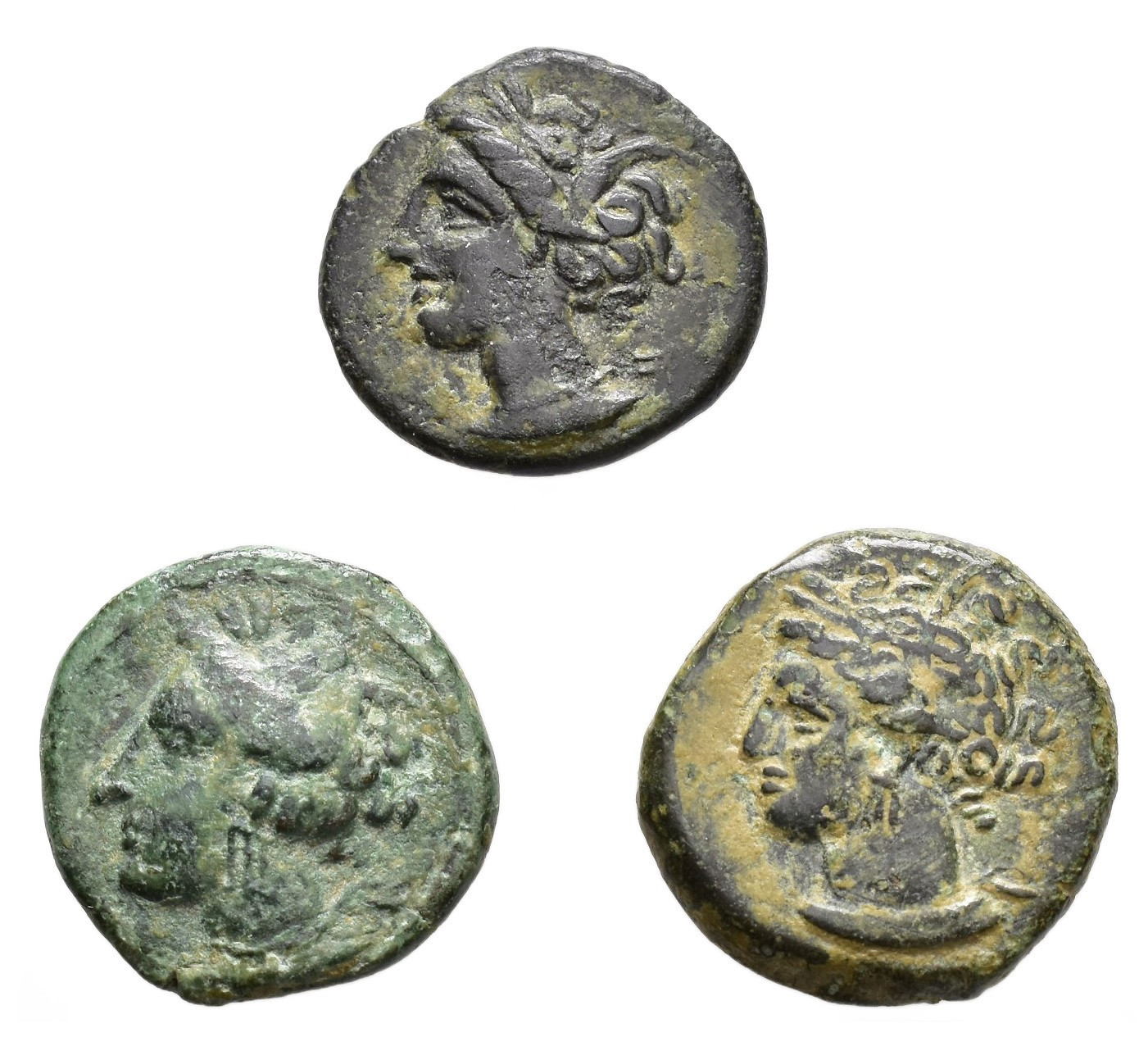 GRECIA ANTIGUA. CARTAGO. Lote de 3 piezas de 1/4. MBC-/MBC.
