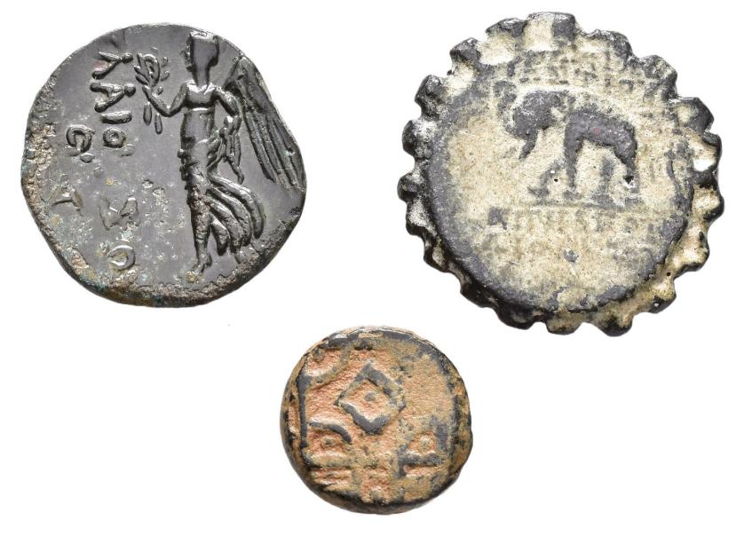 GRECIA ANTIGUA. Lote de 3 piezas de bronce. BC+/MBC+.