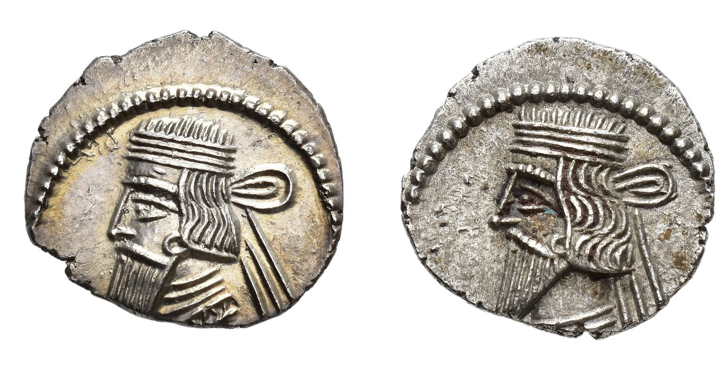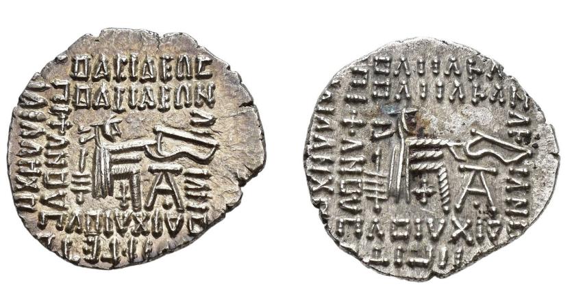 GRECIA ANTIGUA. IMPERIO PARTO. Lote de 2 dracmas de Vologases III (105-147 d.C.). MBC+/EBC.