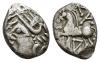 GRECIA ANTIGUA. GALIA. Heduos. Quinario (c. s. I a.C.). A/ Cabeza de Roma a izq. R/ Caballo galopando a izq., alrededor ley. greiga. AR 1,85 g. 10,7 mm. SBG-90 sim. MBC-.