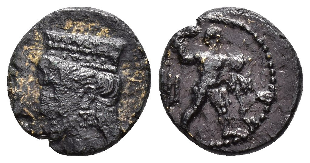 GRECIA ANTIGUA. CHIPRE. Kitio. Melekiathon (392-361 a.C.). A/ Cabeza de Afrodita a izq. con estéfane. R/ Herakles a izq., en campo letras en arameo. AE 1,87 g. 13,9 mm. COP-20. Concreciones. BC+/MBC.
