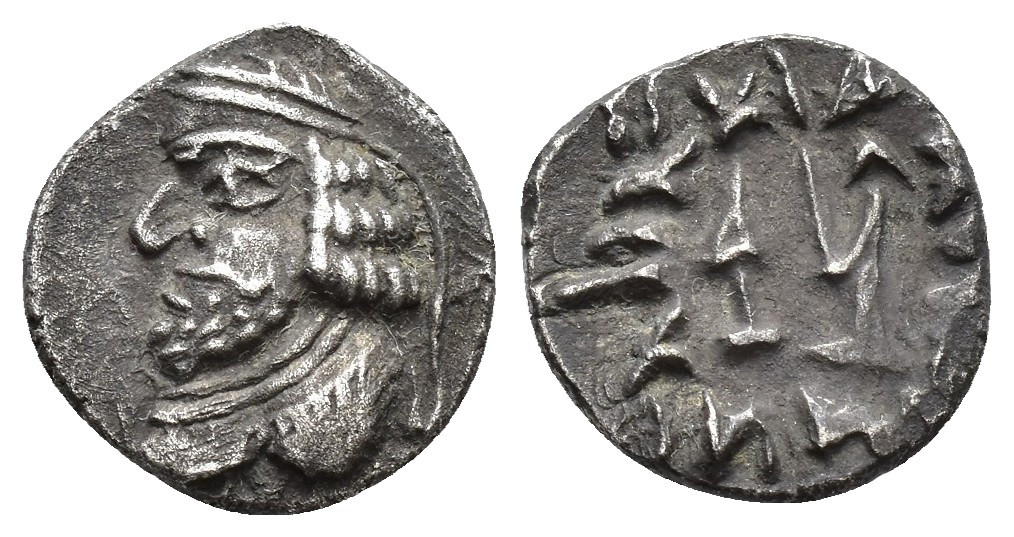 GRECIA ANTIGUA. PERSIS. Hemidracma. Artajerjes II (s. I a.C.). A/ Busto a izq. R/ El rey a izq. ofrendando en altar. AR 2,01 g. 14 mm. COP-297. MBC.