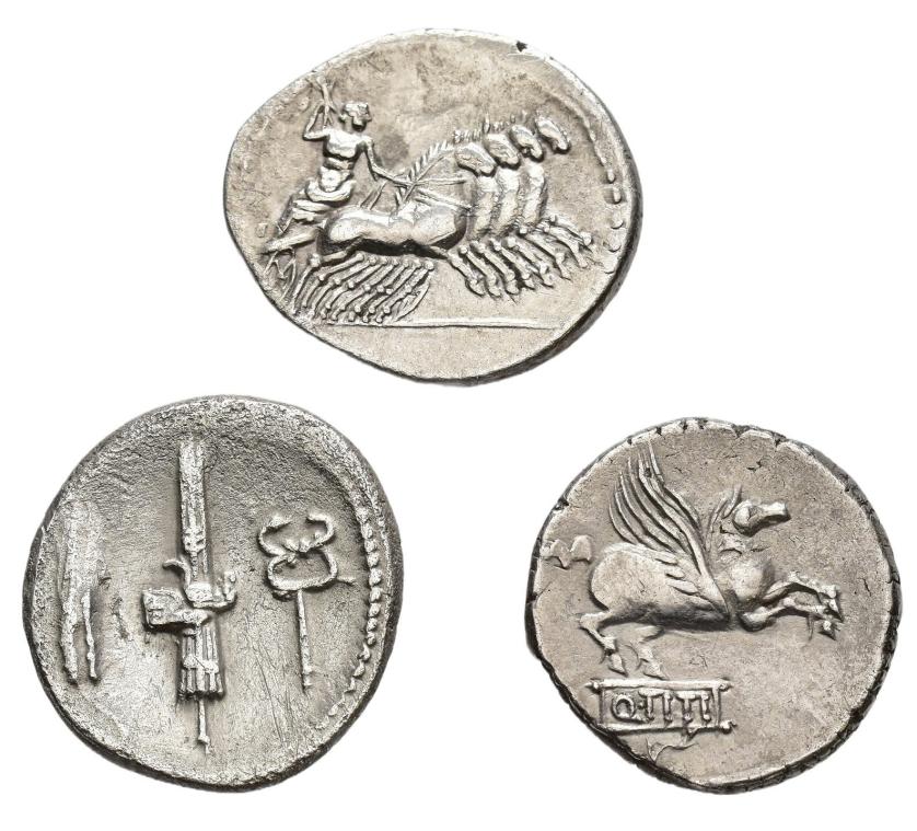 REPÚBLICA ROMANA. Lote de 3 denarios: anónimo, Titia y Norbana. BC+/MBC.
