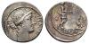REPÚBLICA ROMANA. SERVILIA. Denario. Roma (57 a.C.). A/ Cabeza de Flora a der., detrás lituo; FLORAL PR(IMVS). R/ Dos guerreros; C. SERVEIL-CF. CRAW-423.1; FFC-1122. Vano en rev. Descentrada. MBC+.