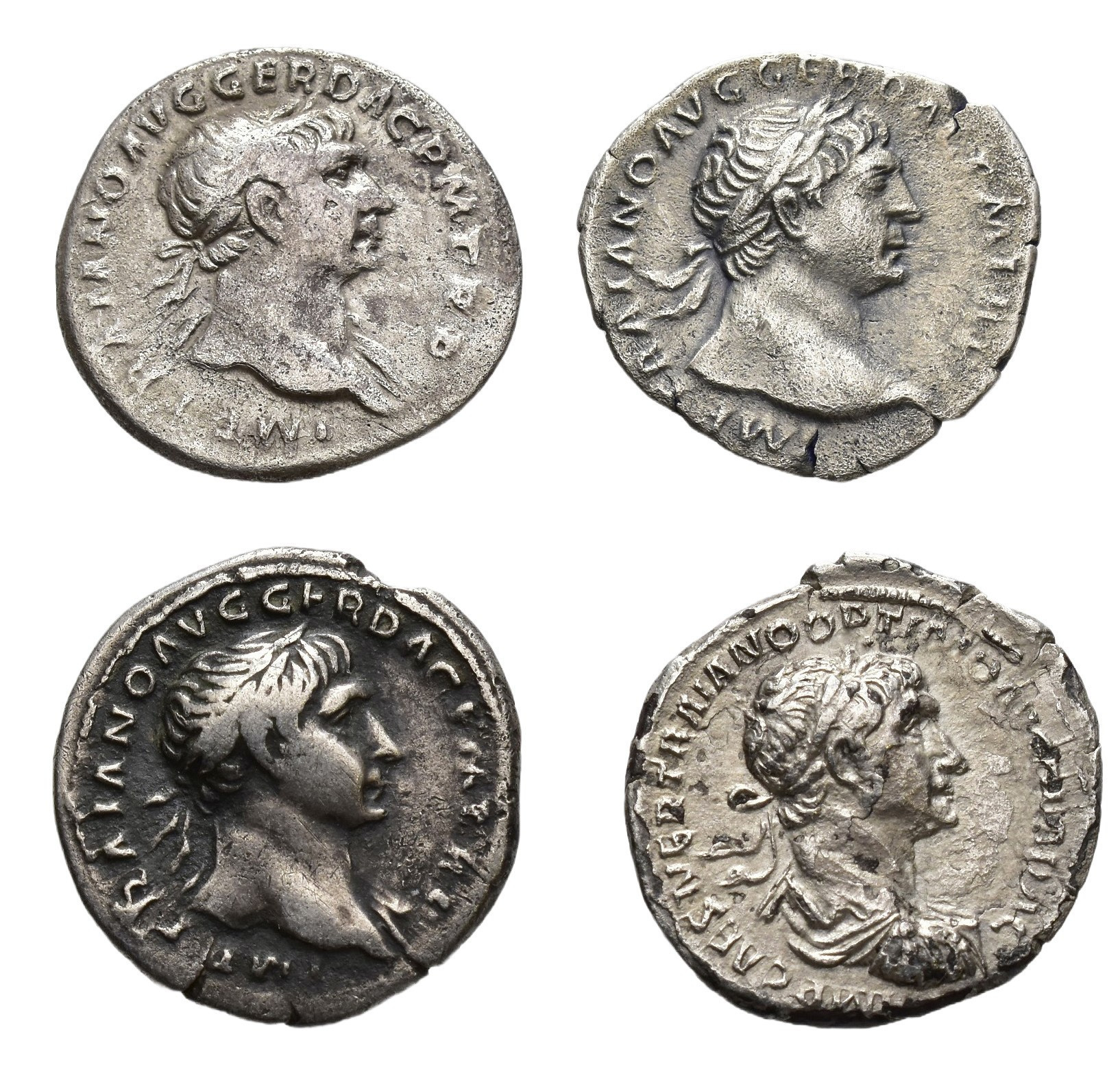 IMPERIO ROMANO. Lote de 4 denarios de Trajano. MBC-/MBC.