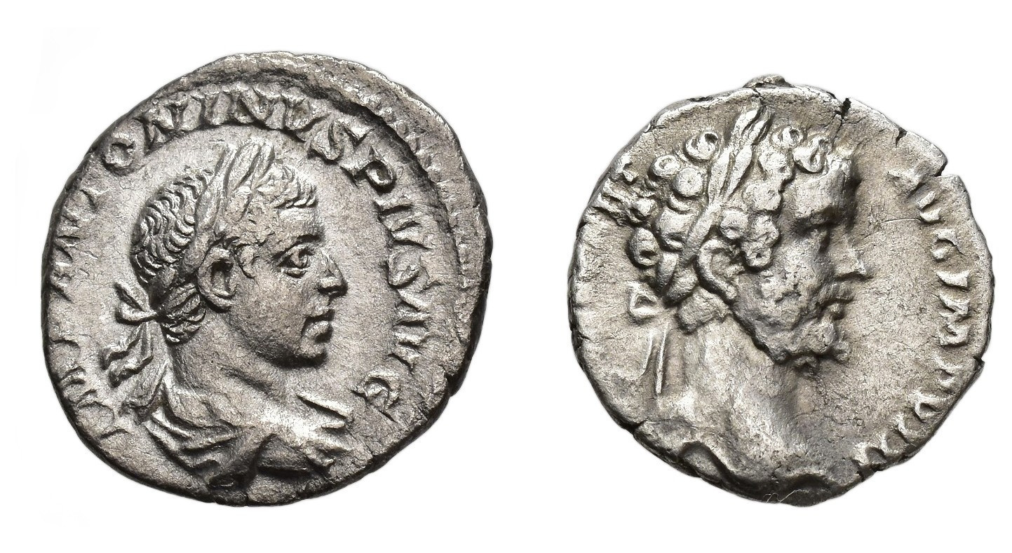 IMPERIO ROMANO. Lote de 2 denarios: Septimio Severo y Caracalla. MBC.