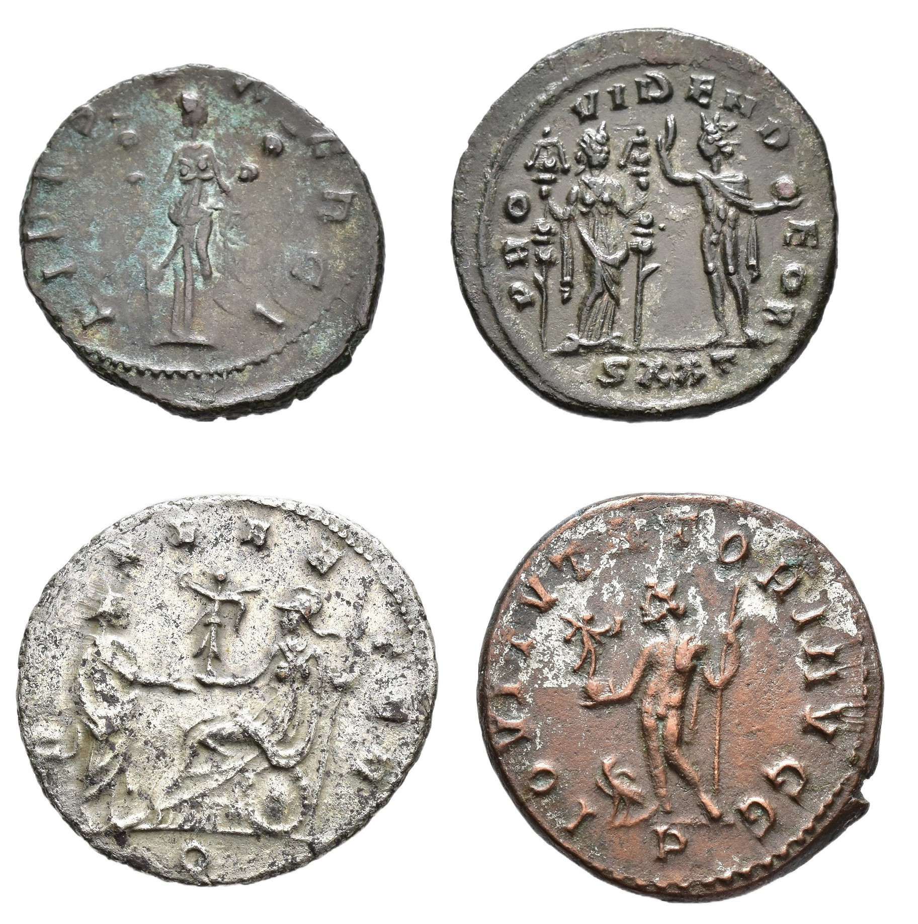IMPERIO ROMANO. Lote de 4 antoninianos: Claudio II, Aureliano (2) y Diocleciano. Calidad media. MBC.