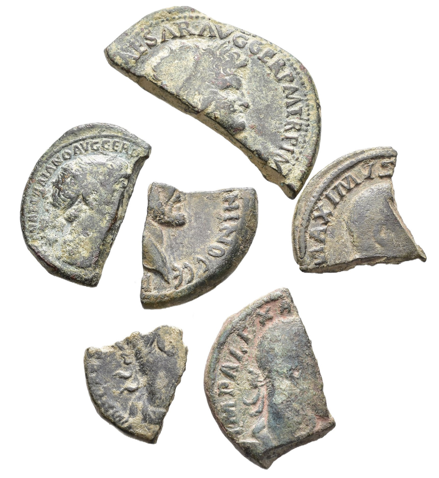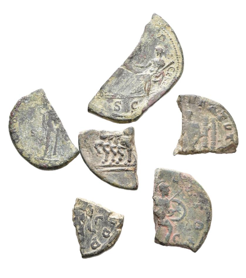 IMPERIO ROMANO. Lote de 6 monedas partidas 1/2 sestercio (1), 1/4 de sestercio (4) y 1/2 dupondio (1). BC+/MBC-.