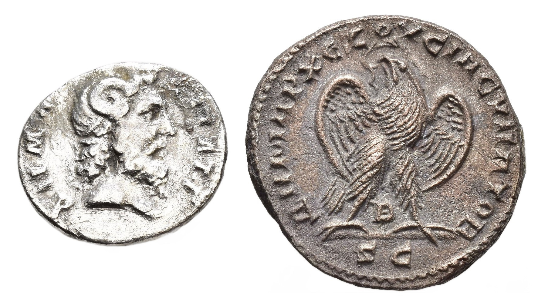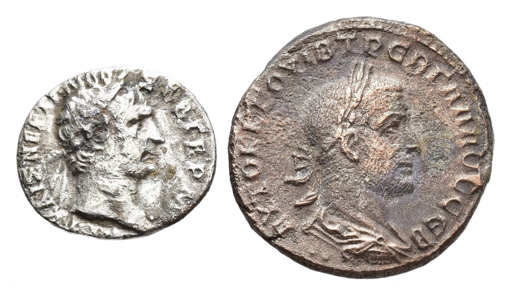 IMPERIO ROMANO. Lote de 2 piezas: 1 dracma de Trajano y 1 tetradracma de Treboniano. MBC-/MBC.