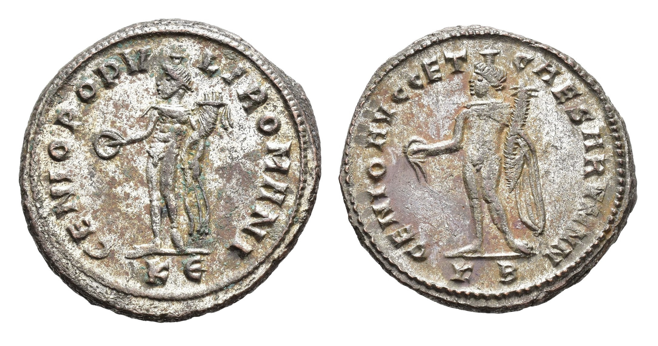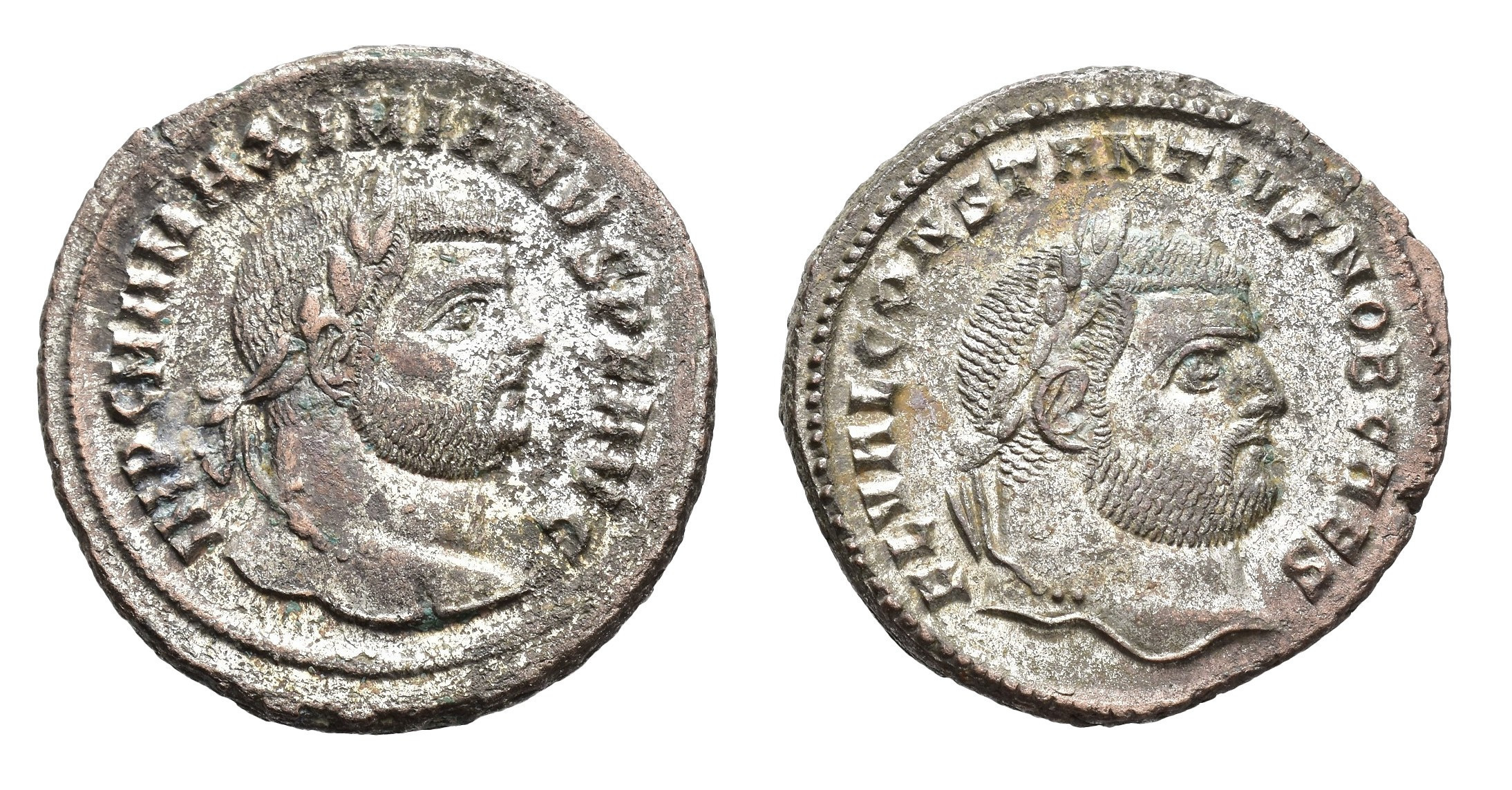 IMPERIO ROMANO. Lote de 2 follis: Maximiano y Constancio I de módulo grande. P.O. MBC+.