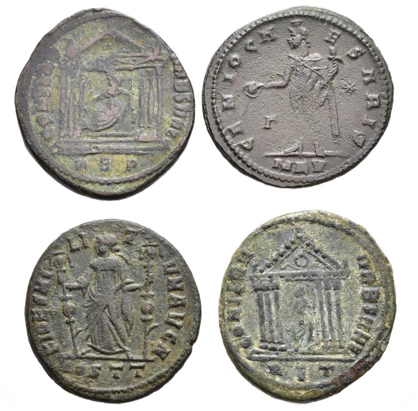 IMPERIO ROMANO. MAJENCIO. Lote de 4 follis de módulo grande. BC+/MBC.