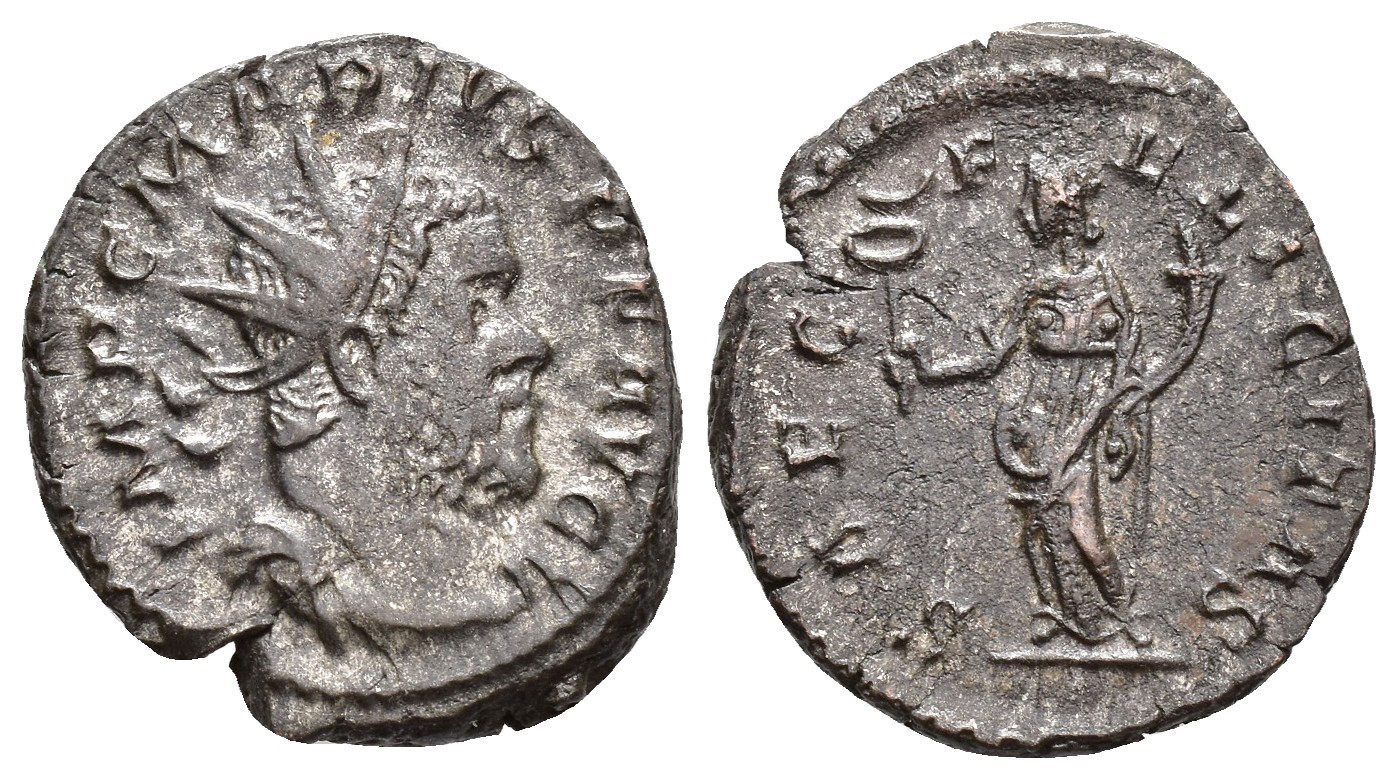IMPERIO ROMANO. MARIO. Colonia. Antoniniano (269). A/ Busto radiado y acorazado a der.; IMP CA MARIVS P F AVG. R/ Felicitas a izq. con caduceo y cornucopia; SAEC FELICITAS. VE 3,76 g. 19,9 mm. RIC-10. Cospel abierto. MBC.
