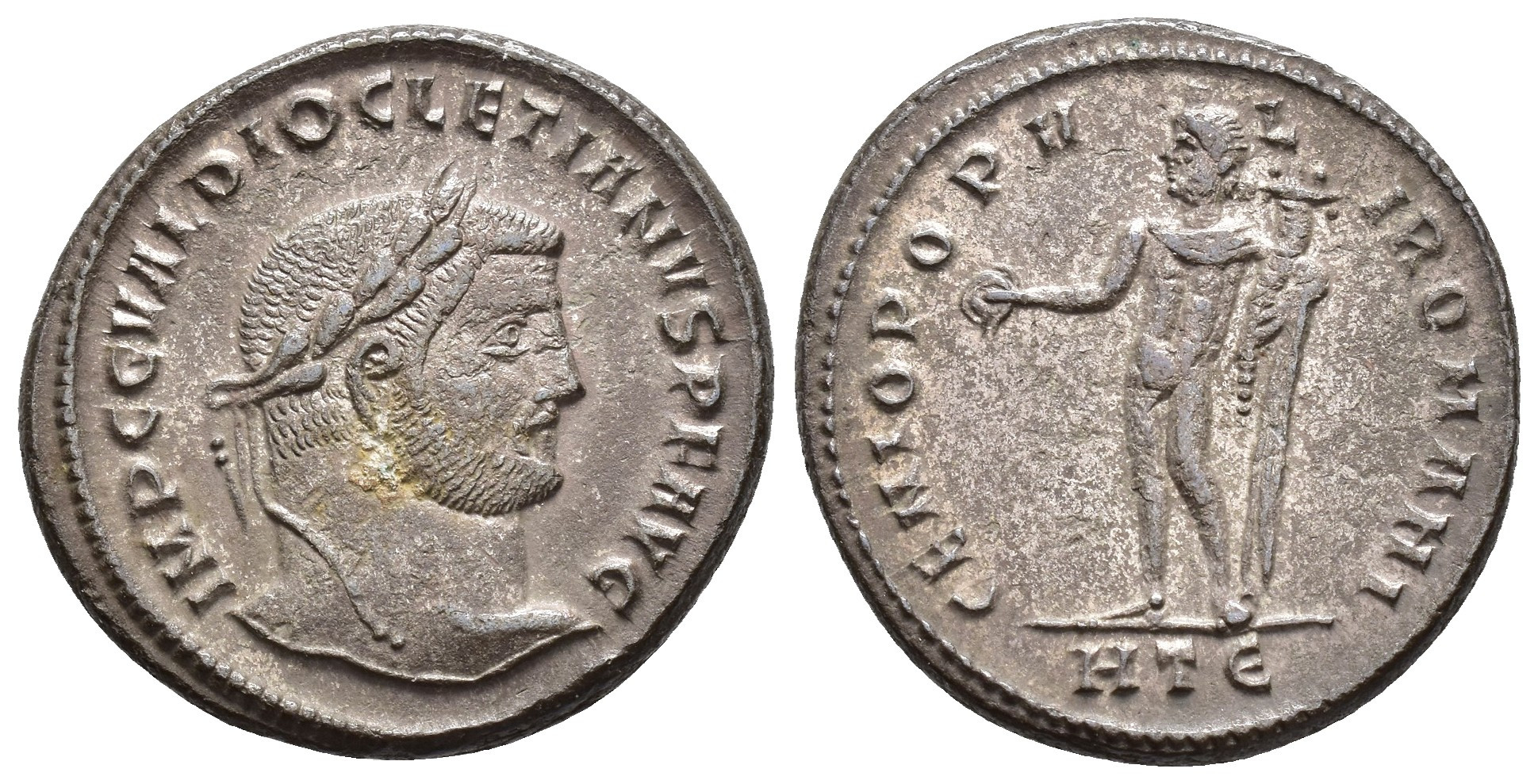 IMPERIO ROMANO. DIOCLECIANO (284-305). Heraclea. Follis (296-297). A/ Cabeza laureada a der. R/ Genio con cornucopia; GENIO POPVLI ROMANI. -/-//HTE. AE 9,6 g. 25,4 mm. RIC-17a. MBC+.