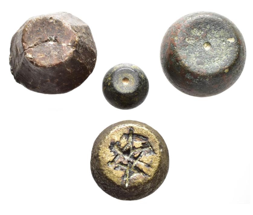 IMPERIO BIZANTINO. Lote de 4 ponderales: quadrans (2: 79,09 y 87,53 g), sextans (87,53 g) y semiuncia (13,33 g). MBC-/MBC.