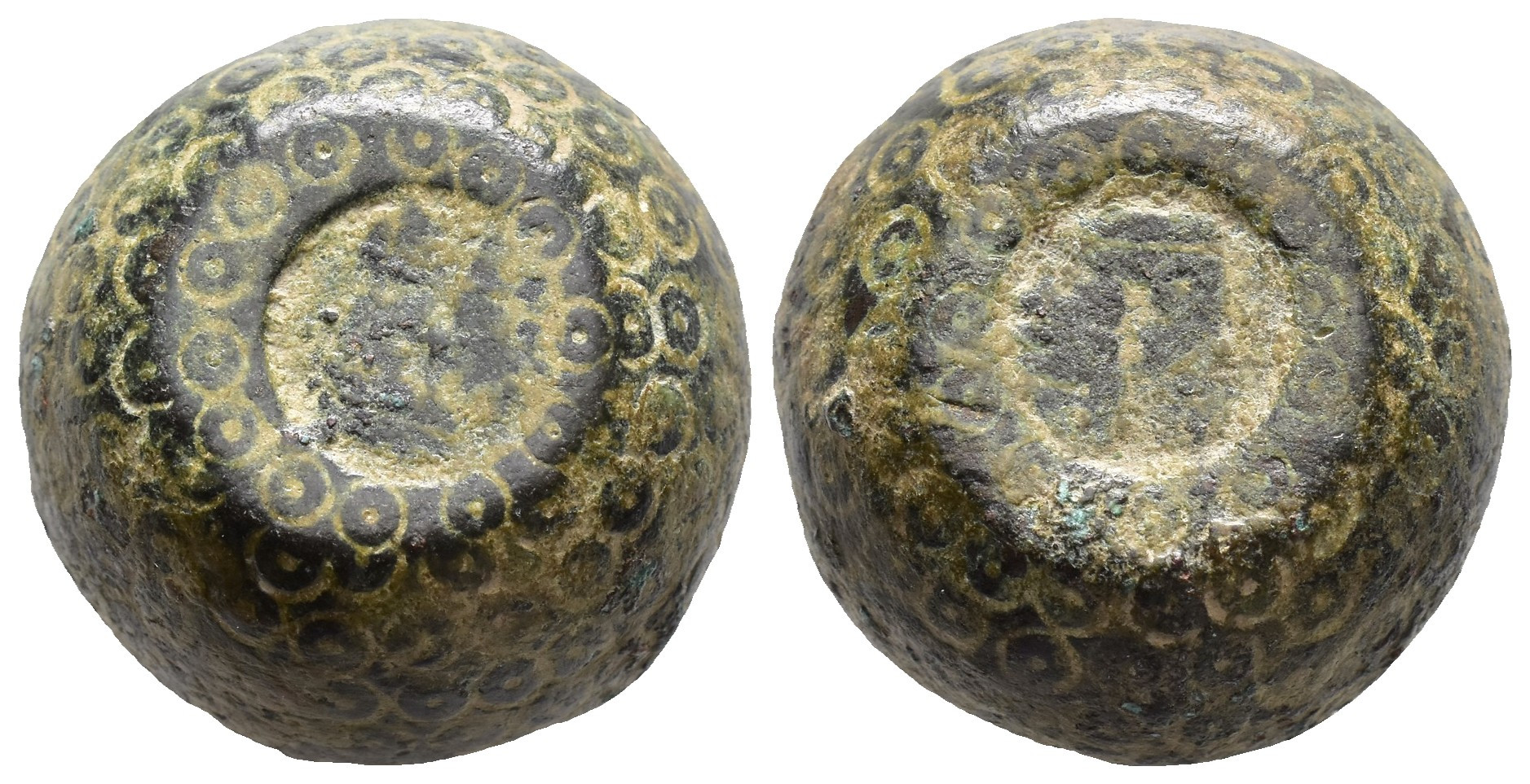 IMPERIO BIZANTINO. Ponderal de 1 sextans= 2 onzas. AE 56,69 g. 24,2 mm. Marcas pequeños círculos. Concreciones. MBC.