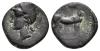HISPANIA ANTIGUA. EMISIONES HISPANO-CARTAGINESAS. Divisor. A/ Cabeza con casco a izq. R/ Caballo parado a der. con la cabeza vuelta. AE 3,3 g. 15,9 mm. I-517; ACIP-613. Pátina oscura. MBC. Muy rara.
