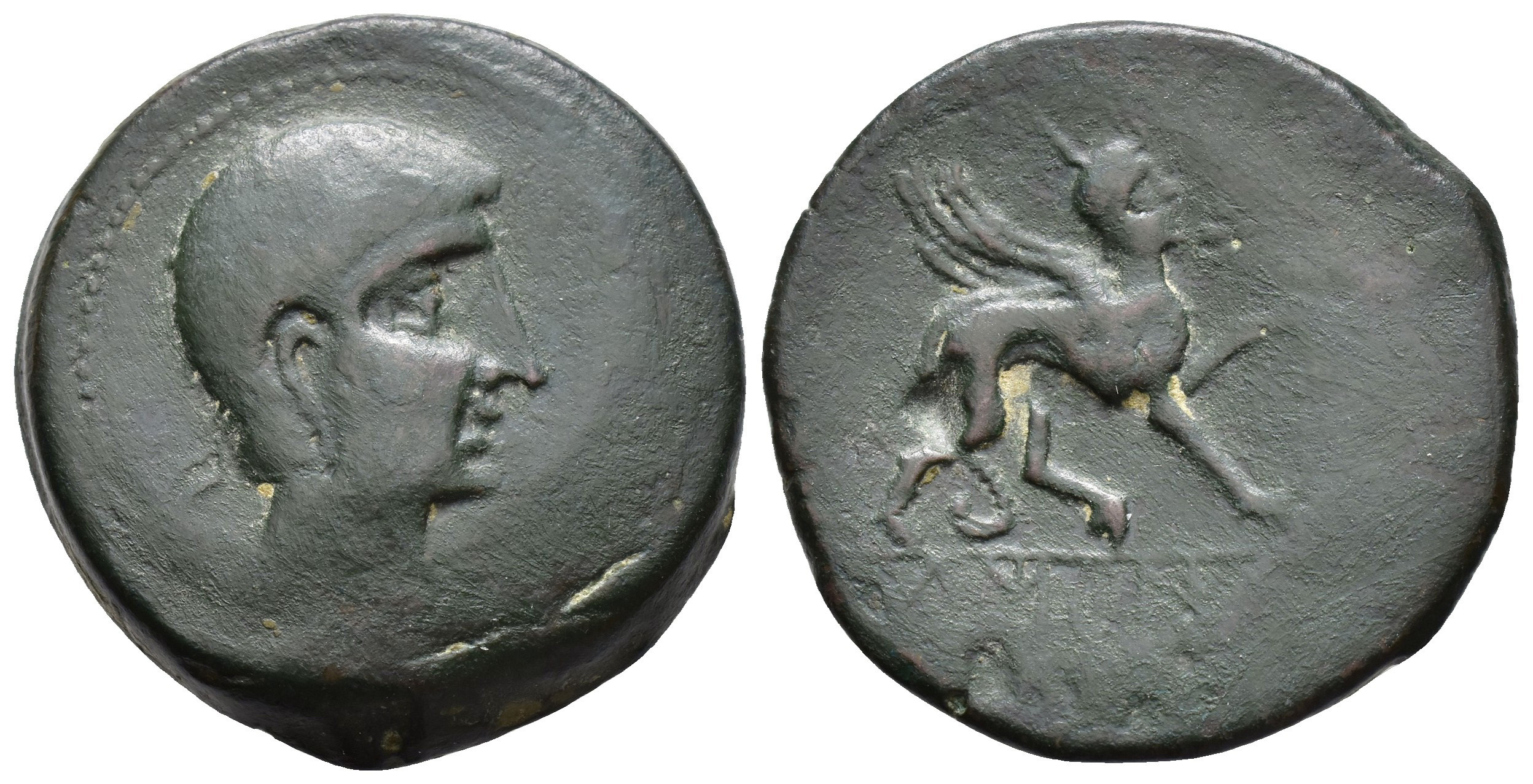 HISPANIA ANTIGUA. KASTILO-CASTULO. As. A/ Cabeza masculina diademada a der. R/ Esfinge avanzando a der., delante Ko, no visible, debajo KaSTiLO. AE 28,9 g. 34,9 mm. I-697; ACIP-2113. Vanos. Pátina verde oscuro. MBC.