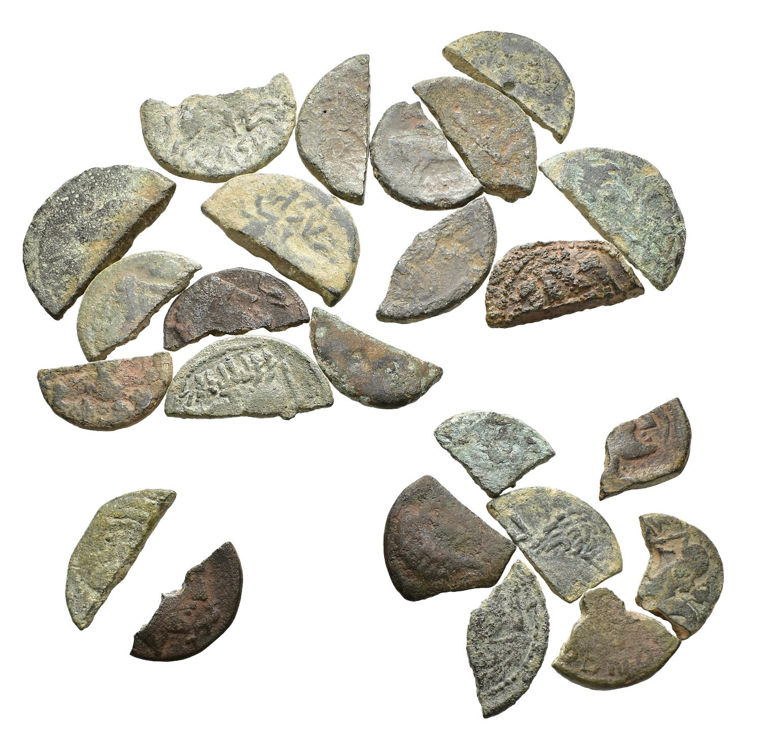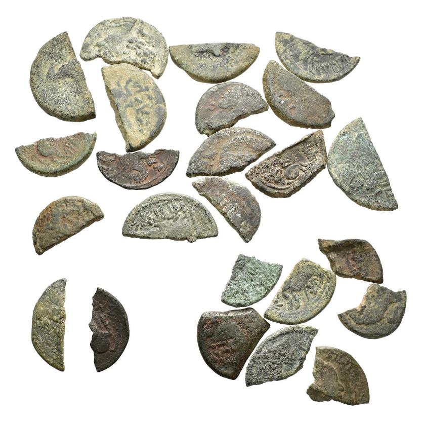 HISPANIA ANTIGUA. Lote de 24 monedas partidas con tipo del jinete ibérico: 1/2 as (15), 1/4 as (7) y 1/6 as (8). RC/MBC.
