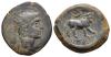 HISPANIA ANTIGUA. KASTILO-CASTULO. Semis. A/ Cabeza masculina diademada y con ínfulas a der. R/ Toro a der., encima, creciente, debajo, ley. ibérica: KASTILO. AE 7,90 g. 24,7 mm. I-716; ACIP. 2131; CC-2558, mismo ejemplar. Pequeño defecto del cospel en el anv. Pátina verde. MBC+. Rara.