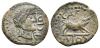 HISPANIA ANTIGUA. KASTILO-CASTULO. Cuadrante. A/ Cabeza masculina, laureada y con ínfulas a der., delante, ley. externa: AP. CLO. R/ Jabalí a der., encima: C. AVE., en el exergo: A.POS. AE 2,59 g. CNH-58. ACIP-2162. CC-2696, mismo ejemplar. MBC/MBC-. Muy rara.