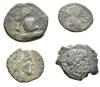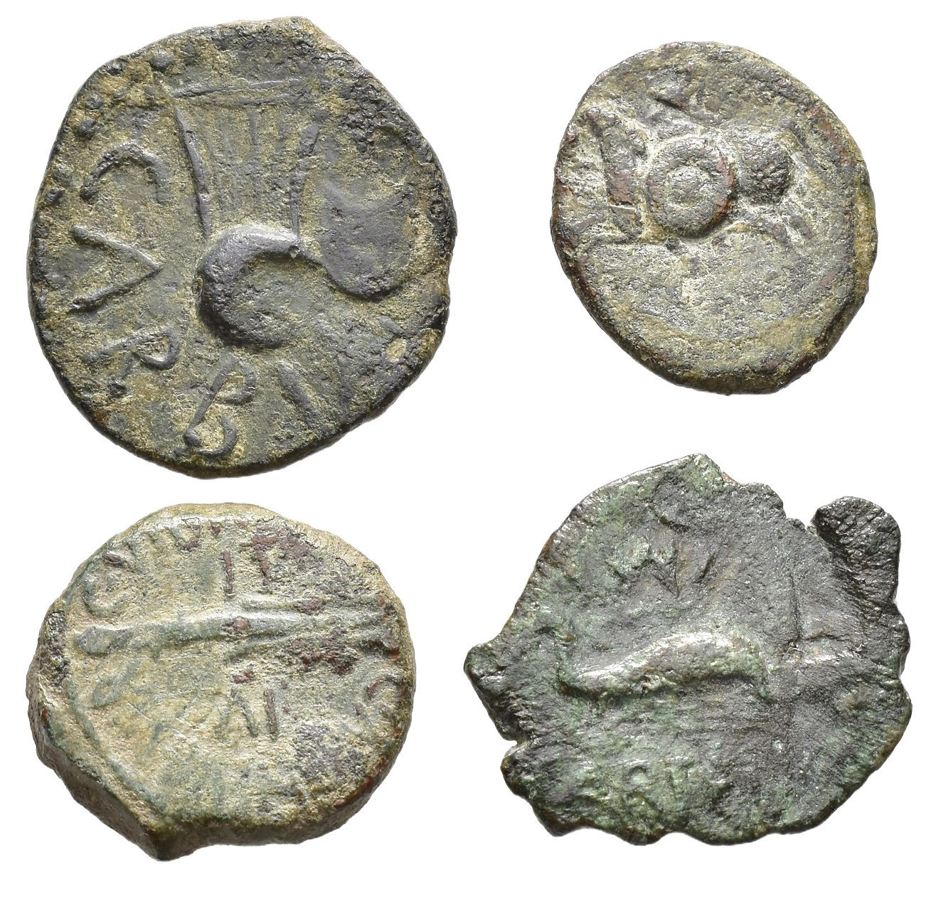 HISPANIA ANTIGUA. Lote de 4 piezas: Carisa, Carteia (2) y Carbula. ACIP-2313, 2516, 2554 y 2598. CC-3346, 2554, 3567 y 3697, mismos ejemplares. RC/BC+.